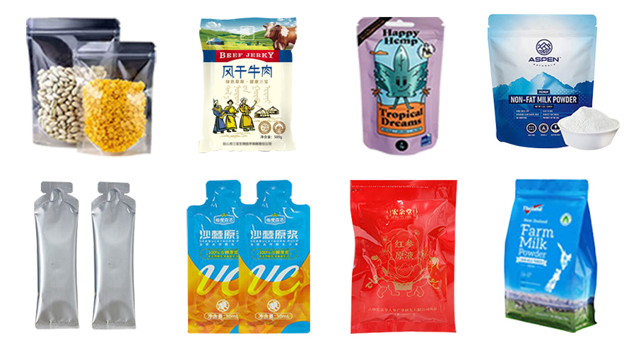 Bag packaging machine is suitable for weighing and packing grain, stick, slice, globose, irregular shape products such as candy, chocolate, jelly, pasta, melon seeds,roasted seeds, peanuts, pistachios, almonds, cashews, nuts, coffee bean,chips, raisins, plum, cereals and other leisure foods, pet food, puffed food,vegetable, dehydrated vegetables,fruits, sea food, frozen food, small hardware etc.